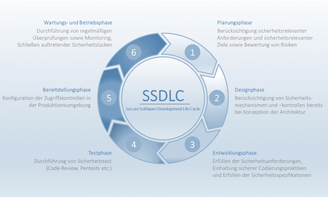 6. Wartung und Betrieb – Langfristige Sicherheit sicherstellen: Die Phase der Wartung und des Betriebs beinhaltet regelmäßige Überprüfungen und Updates, um neu entdeckte Sicherheitslücken zeitnah zu adressieren und die Sicherheit der Software dauerhaft zu gewährleisten. Reaktionen auf Sicherheitsvorfälle und umgehendes Patchen von bekannten Schwachstellen sind in dieser Phase von großer Bedeutung.