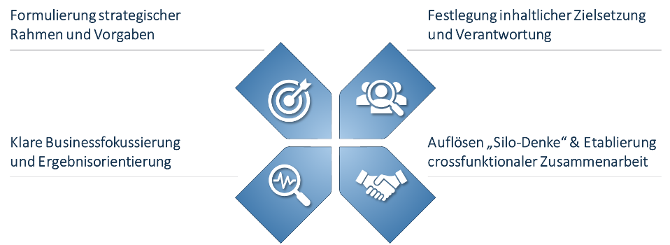 Agilität kann nur dann erfolgreich sein, wenn Bereichsgrenzen überwunden und gemeinsame Ziele in den Mittelpunkt gestellt werden. Cross-funktionale Teams ermöglichen es, Fähigkeiten zu bündeln, schneller zu handeln und ganzheitliche Lösungen zu entwickeln. Der Fokus verlagert sich von der Optimierung einzelner Bereiche hin zur Wertschöpfung für Kunde, Geschäft und Organisation insgesamt.