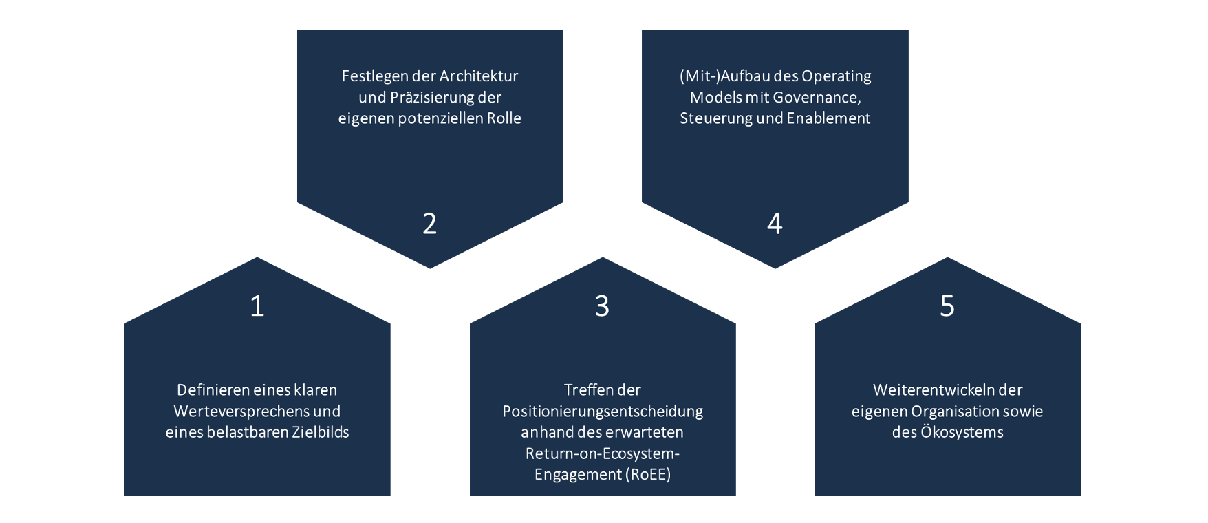 Aus unserer Erfahrung wissen wir, dass Regional- und Kantonalbanken fünf Voraussetzungen erfüllen müssen, um das Potenzial von Ökosystemen im Firmenkunden- und KMU-Geschäft strategisch wirksam zu nutzen.